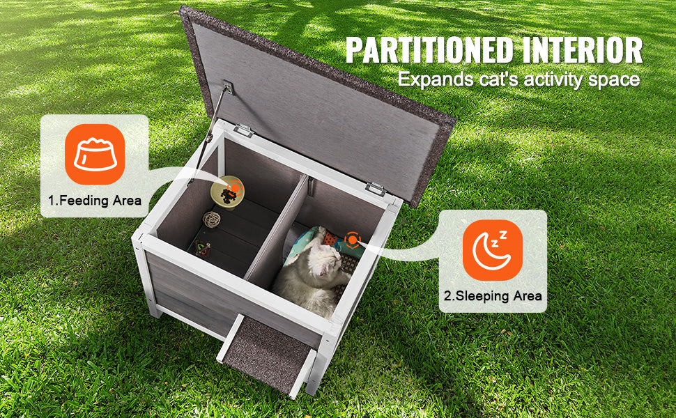 SucceBuy Outdoor Cat House Weatherproof, Feral Cat Shelter for Cat, Outdoor Wooden Cat or Rabbit House with All-Round Foam Insulated